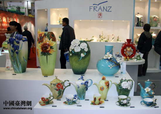 2011年北京臺灣名品博覽會6日上午在北京正式開幕,近萬項臺灣產品參展。圖為展出的臺灣琺瑯瓷。(中國臺灣網 王思羽 攝)