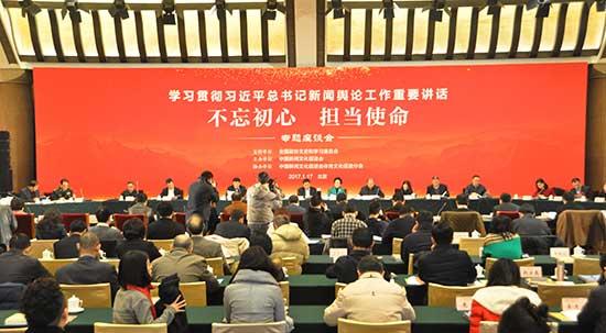 2017年1月17日,由全國政協文史和學習委員會支持,中國新聞文化促進會主辦的學習貫徹習近平總書記新聞輿論工作重要講話“不忘初心 擔當使命”專題座談會在北京釣魚臺國賓館舉行。全國人大常委、全國人大常委會教科文衛委員會主任委員柳斌杰,人民日報社副總編輯盧新寧,全國政協常委韋建樺、張海濤,全國政協委員卞晉平、金學鋒、李東東、于芳、王濤、艾克拜爾·米吉提、龍新南、鄔書林、張丕民、張曉林、郝振省、海霞、黃書元、黃國柱,解放軍報社副社長兼政治部主任雷雨,中宣部出版局巡視員、副局長劉建生,國家新聞出版廣電總局新聞報刊司司長李軍,中央網信辦網絡社會局副局長孫愛萍,以及中國新聞文化促進會副理事長、常務理事、理事、新聞界文化界代表近200人出席會議。