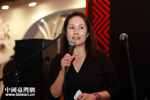 臺灣少數民族文創品牌“部落行銷”展示產自少數民族部落的手工藝品和農特產品。圖為臺灣少數民族民意代表高金素梅現身展區推介部落產品。(中國臺灣網 王偉 攝)