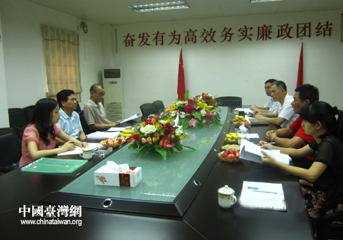 中國(guó)臺(tái)灣網(wǎng)7月19日廣州消息 7月14日至15日,廣東省臺(tái)辦副主任蔣長(zhǎng)芳一行4人到江門(mén)市調(diào)研,并與江門(mén)市委臺(tái)辦有關(guān)人員進(jìn)行了座談。