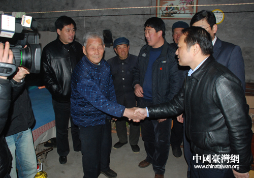 中國臺灣網1月9日濰坊消息 日前,山東濰坊市委臺辦主任劉衍信、市臺灣同胞投資企業協會會長陳郭民、副會長郭文鈞一行8人,赴臨朐縣禪院院村舉行“愛心捐贈”活動,為當地60以上的老人送去價值2萬元的40床羊絨棉被和40桶花生油。
