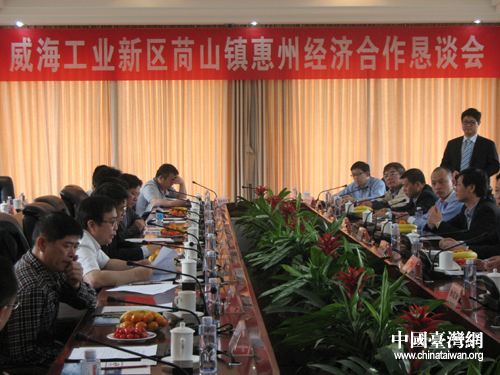 中國臺灣網4月10日威海消息  日前,威海市臺辦會同工業新區及苘山鎮赴廣東惠州市開展對臺招商活動,舉行了“威海工業新區苘山鎮惠州經濟合作懇談會”。