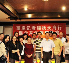 中國臺灣網9月20日棗莊消息 近日,蒞棗出席第三屆兩岸漢字藝術節歡迎宴會的臺灣中華文化總會會長劉兆玄與山東省棗莊市互贈禮品。 (中國臺灣網棗莊市臺辦通訊員 項允剛)
