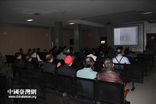 觀看大戰影像資料。(圖片來源:棗莊市臺辦)