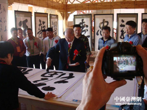 中國臺灣網11月2日湖南寧遠消息 日前,“萬福(臺灣)書法學院落成典禮暨陳大絡教授書法展”在風光如畫的九嶷山下,寧遠縣桃花巖生態度假園隆重舉行。萬福(臺灣)書法學院院長陳大絡、市縣領導及各級友人共500余人參加典禮。