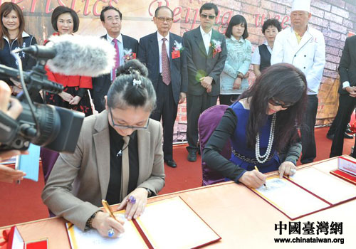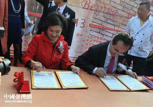 北京便宜坊烤鴨集團(tuán)有限公司與高雄港都之星餐飲有限公司簽署協(xié)議。(北京通訊員 馬宇衡 攝)
