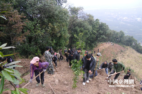 江永縣臺辦到黃甲嶺石嶺村開展義務(wù)植樹活動。(圖片來源:江永縣臺辦)