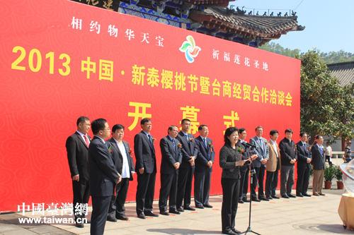 中國臺灣網5月13日新泰消息 由山東省新泰市人民政府和泰安市臺灣事務辦公室共同舉辦的“2013中國·新泰櫻桃節暨臺商經貿合作洽談會”日前在山東省新泰市開幕。山東省臺辦主任張雪燕,泰安市委常委、副市長劉衛東,泰安市人大常委會副主任尹衍祥,泰安市政協副主席宋魯,泰安市臺辦主任劉衛東等出席,臺商及各地客商共80余人參加。