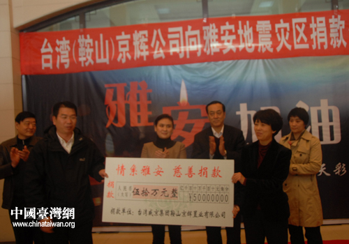 臺企鞍山京輝置業有限公司向雅安災區捐款
