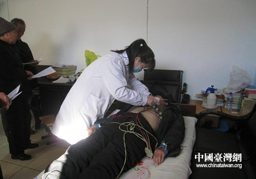 醫護人員為老人們聽心臟、做心電圖。(圖片來源:鄭州市臺辦)