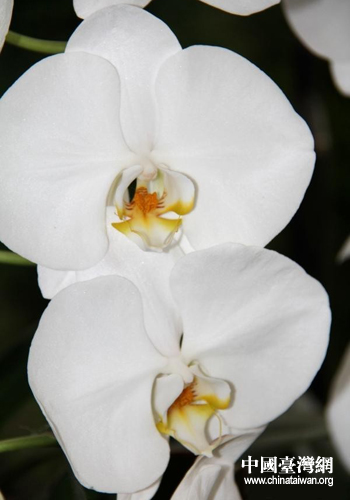 圖為臺灣珍品白蝴蝶蘭,一株有20個花瓣,培育成熟要5-10年,極為珍貴,世界上僅臺灣有20余株。(錦州市臺辦 崔國志 攝)