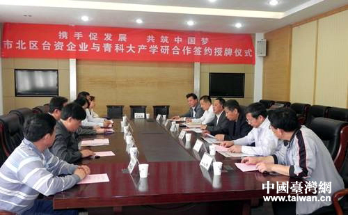 青島科技大學(xué)與青島市市北區(qū)臺(tái)資企業(yè)建立產(chǎn)學(xué)研戰(zhàn)略合作。(圖片來(lái)源:青島市臺(tái)辦)
