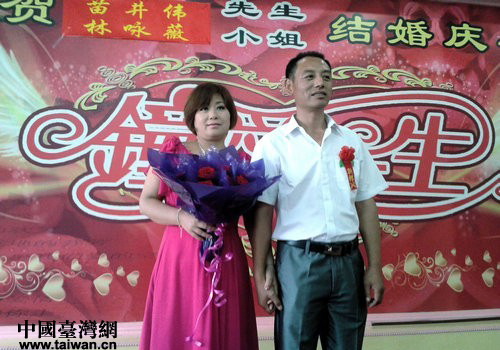 中國臺灣網8月15日遼中消息 日前,一場牽手兩岸的婚禮在沈陽市遼中縣肖寨門鎮老觀坨村隆重舉行,婚禮的兩位主角分別是遼中縣老觀坨村的農民企業家苗井偉和來自海峽彼岸的臺灣中華生產黨海外開發部副部長林詠薇,他們在網絡上相識、相知、相愛,演繹出跨海攜手的生動愛情故事。