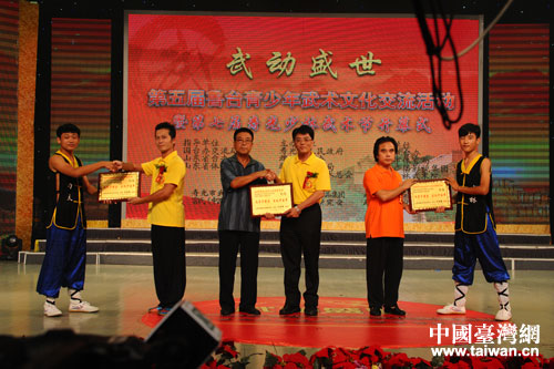 中國臺灣網8月19日濰坊消息 8月17日晚,由壽光市人民政府、濰坊市臺辦、濰坊市體育局主辦的第五屆魯臺青少年武術文化交流活動在山東省壽光市盛大開幕,并舉行了開幕式晚會。