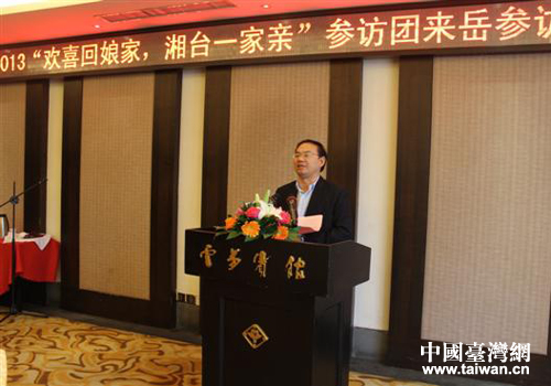 岳陽(yáng)市委常委、組織部部長(zhǎng)、統(tǒng)戰(zhàn)部部長(zhǎng)伍國(guó)用致辭。(圖片來(lái)源:岳陽(yáng)市臺(tái)辦)