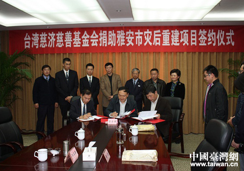 臺灣慈濟慈善事業基金會援建雅安災后重建項目正式簽約。(圖片來源:雅安市臺辦)