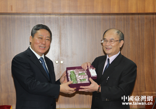 雙方互贈禮物。(圖片來源:棗莊市臺辦)