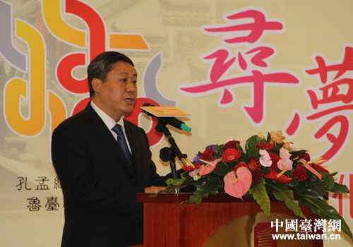 中國臺灣網10月30日臺北消息 10月29日,尋夢臺兒莊——兩岸文化旅游產業合作發展懇談會在臺北市圓山大飯店舉行。山東省旅游局局長于沖,棗莊市市長張術平,臺灣新黨主席郁慕明,以及兩岸文化旅游行業專家學者、兩岸媒體記者等200余人出席。