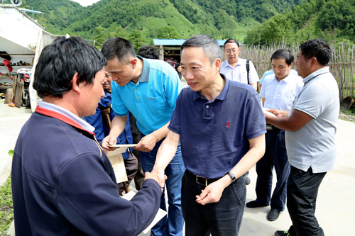 6月16日,由省臺辦副主任趙宇、副巡視員楊志學帶隊,深入省臺辦另一個聯(lián)系點瀘定縣德威鄉(xiāng)海子村。該村是瀘定縣新村建設項目重點打造的村組之一,在新村建設“山、水、田、林、路”綜合治理中,省臺辦協(xié)調(diào)了380萬資金用于道路和公共設施建設。在村組的農(nóng)家院落里,趙宇、楊志學及處級以上領導干部與“一對一”幫扶聯(lián)系貧困戶當面認親,送上個人捐款,詢問村民衣食住行方面的情況。在德威鄉(xiāng)貢嘎山寄宿制小學,趙宇一行為30名貧困學生送上了臺胞彭蔭剛先生的15000元助學款,并詳細了解了由省臺辦協(xié)調(diào)450萬元臺胞援建經(jīng)費修建學校綜合樓的前期籌備工資情況。