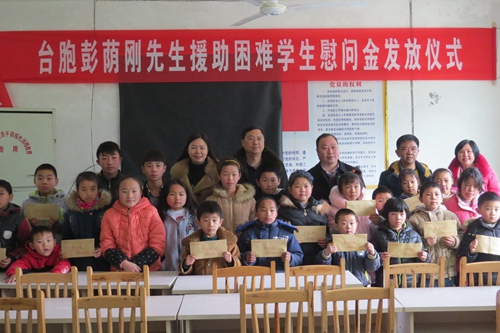 中國臺灣網3月8日瀘州訊 新學期開學之際,瀘州市臺辦在敘永縣舉行臺商彭蔭剛先生助學金發放儀式,F場60名困難學生受到資助。瀘州市臺辦主任韓俊平出席儀式并講話,勉勵孩子們要克服暫時的困難,努力學習,將來成為一名對社會有用的人;更要懂得感恩,讓愛心接力,回報社會。