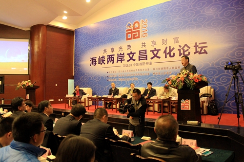 郁慕明在致辭中說,文昌文化作為中華傳統文化之一,經過漫長歷史發展過程,其思想內涵愈加豐富,“弘德崇文、明禮修身”的核心思想遠播華夏大地,在大陸和港澳臺地區具有廣泛的影響力。梓潼是文昌文化的發祥地、傳承地、光大地、擴散地。今天我們聚首文昌祖庭,共祀帝君、共緬懿德、共敘親情、共同探討文昌文化思想價值,共同祈愿兩岸和平、和睦、和諧,對弘揚中華傳統文化具有重要的現實意義。