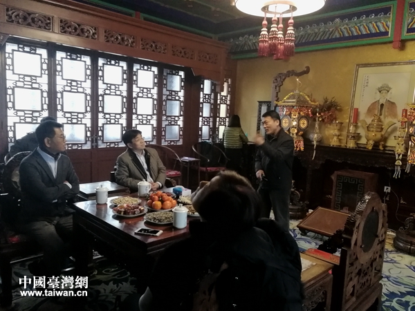 中國臺灣網4月3日天津訊 日前,臺灣維格餅家董事長孫國華率臺灣文創、科技、貿易等領域企業負責人到南開區參訪交流。市臺辦副主任于為忠、南開區副區長徐輝在海峽兩岸交流基地——天津天后宮接待參訪團一行,并就剛剛出臺的《關于促進兩岸經濟文化交流合作的若干措施》(簡稱“31條措施”)以及媽祖文化與文創產業融合發展進行深度交流,征求臺商們的意見建議。南開區有關單位負責同志參加活動。
