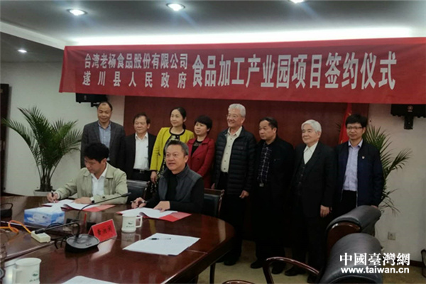 臺商認為,遂川區位條件優越,配套設施完善,產業方向正確,管理體制到位。為此,臺灣老楊食品股份有限公司與遂川縣人民政府舉行食品加工產業園項目簽約儀式。(中國臺灣網、吉安市臺辦聯合報道)