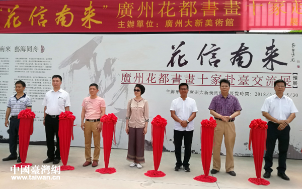 圖為臺資企業負責人和相關負責人為預展剪彩。(圖片來源:廣州市花都區臺辦)