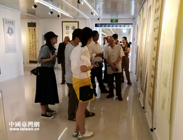 圖為觀眾參觀書法作品。(圖片來源:廣州市花都區臺辦)