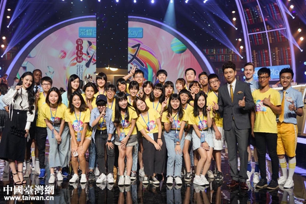 錄制結束后,臺灣實習生和《漢語橋》節目的主持人、參賽選手等合影留念。(中國臺灣網湖南省臺辦通訊員余林釵)