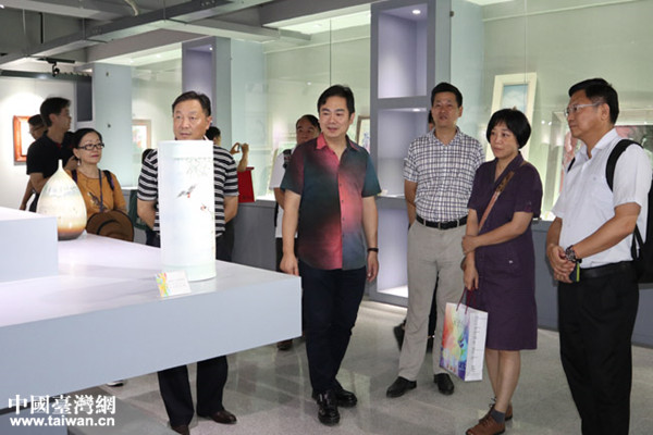 7月21日上午,交流團(tuán)一行來(lái)到景德鎮(zhèn)學(xué)院陶瓷美術(shù)與設(shè)計(jì)藝術(shù)學(xué)院進(jìn)行參觀交流,景德鎮(zhèn)市臺(tái)辦主任李旭東,景德鎮(zhèn)學(xué)院黨委委員、宣傳統(tǒng)戰(zhàn)部長(zhǎng)方文龍,陶瓷美術(shù)與設(shè)計(jì)藝術(shù)學(xué)院院長(zhǎng)方漫等相關(guān)領(lǐng)導(dǎo)陪同接待。