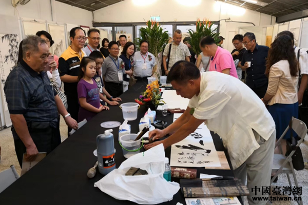 開幕式上即席揮毫。(圖片來源:廣州市番禺區臺辦)
