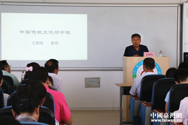 王新陸教授作“中國傳統文化與中醫”的報告。(圖片來源:山東中醫藥大學)