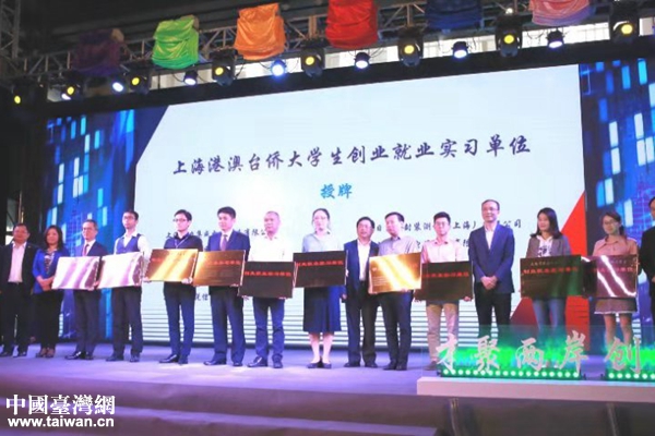 活動開幕式上,十家企業(yè)被授予“上海市港澳臺僑大學(xué)生創(chuàng)業(yè)就業(yè)實(shí)習(xí)單位”稱號。(圖片來源:上海市臺辦)
