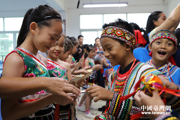 兩岸學生交換禮物。(圖片來源:廣西臺辦)