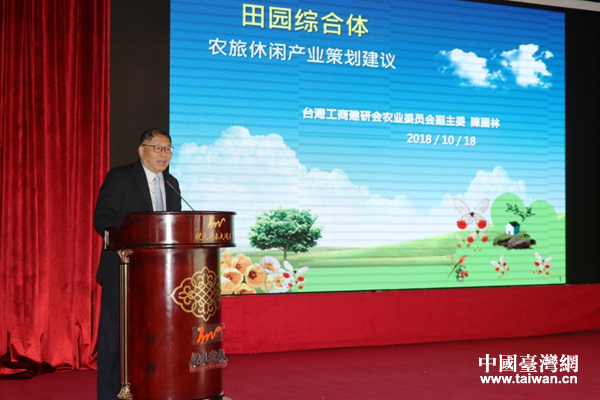 臺灣工商建研會農(nóng)業(yè)委員會副主委陳國林講話。(圖片來源:威海市臺辦)