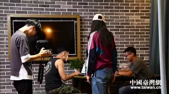 參賽選手正在拍攝剪輯影片。(圖片來源:廣東省臺辦)