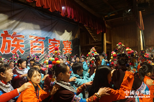 學校交流活動結束后,參訪團一行驅車前往三江縣冠洞村寨,考察當地的少數民族風貌,游覽具有侗族特色的戲臺、風雨橋、鼓樓建筑。嘉里小學紀校長表示:“這里是最原始最美的地方!”當地的少數民族居民在大寨前來了一場特殊的歡迎禮,不管男女老少,都身著民族服裝,吹著蘆笙,高唱民歌,迎接遠道而來的嘉賓。臺灣師生們興高采烈,跟著對起歌謠。兩地師生們圍坐在戲臺觀看蘆笙踩堂、侗家紡織、打油茶等演出,現場響起陣陣熱烈的掌聲。村民們熱情地拿出自家準備的飯菜,舉辦了一場盛大的百家宴。兩岸同胞相互圍坐在熱氣騰騰的爐火邊,品嘗特色美食,交流各自的鄉情,給暖暖的冬日增添了一份溫情。(中國臺灣網柳州市臺辦通訊員 潘雨茜)