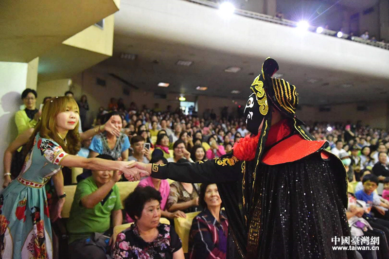 當(dāng)晚,高雄市苓雅區(qū)英雄館演藝廳內(nèi)氣氛熱烈。演出之前,交流團(tuán)的藝術(shù)家們現(xiàn)場展示了書法、京劇臉譜、剪紙和內(nèi)畫鼻煙壺傳統(tǒng)手工藝,并與高雄民眾熱絡(luò)交流。而后,來自中國評劇院、中國東方演藝集團(tuán)、中國鐵路文工團(tuán)、中國曲藝家協(xié)會(huì)、中國合唱協(xié)會(huì)、北京當(dāng)代舞團(tuán)、朝陽藝術(shù)團(tuán)和朝陽區(qū)街鄉(xiāng)藝術(shù)團(tuán)的藝術(shù)家們獻(xiàn)上多個(gè)精心準(zhǔn)備的節(jié)目,空竹表演《流光溢彩》、女生獨(dú)唱《美麗的草原我的家》、相聲《時(shí)尚評書》、快板《數(shù)唱老北京》等相繼上演,讓1000余位當(dāng)?shù)厥忻褓澆唤^口。其中,川劇變臉絕技備受青睞,在現(xiàn)場觀眾驚嘆叫絕中,來自朝陽藝術(shù)團(tuán)的青年川劇變臉演員蘇李偉下場與觀眾互動(dòng),掀起小高潮;主辦方精心設(shè)計(jì)的抽獎(jiǎng)環(huán)節(jié)也人氣特別高,現(xiàn)場贈(zèng)送的團(tuán)扇、茶杯墊等來自北京故宮的文創(chuàng)紀(jì)念品受到熱捧,讓觀眾觀賞之余也能把北京故宮獨(dú)具魅力的文化帶回家。