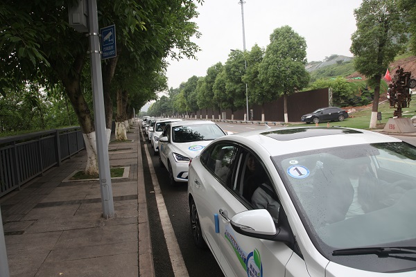 渝臺青年新能源汽車環保行車隊。(來源:重慶市臺辦)