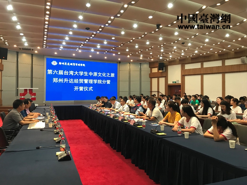 2019年兩岸青年交流月第六屆臺灣大學生中原文化之旅夏令營在鄭州升達經貿管理學院開營。(圖片來源:鄭州市臺辦)