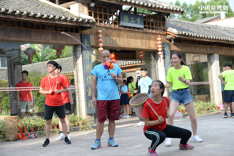 體驗(yàn)少數(shù)民族傳統(tǒng)體育競技——拋繡球。(圖片來源:廣西賀州市臺(tái)辦)