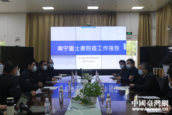 南寧市市長、市疫情防控工作領導小組組長周紅波到富士康科技集團南寧科技園調研疫情防控和復工復產情況。 (中國臺灣網 發)