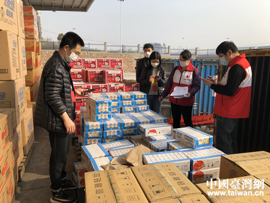 上海旺旺商貿有限公司南寧分公司為疫情防控戰線捐贈物資。 (中國臺灣網 發)