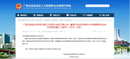 中國臺灣網(wǎng)2月28日訊 據(jù)廣西壯族自治區(qū)人力資源和社會保障廳消息,廣西壯族自治區(qū)職稱改革工作領(lǐng)導(dǎo)小組評審確認(rèn)10位同志取得2019年廣西高級專業(yè)技術(shù)資格,其中包含4名臺籍教師。