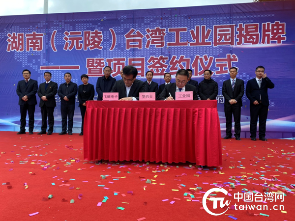 中國臺灣網12月3日訊 11月24日,湖南(沅陵)臺灣工業園揭牌暨投資6.5億元的臺資企業飛磁電子科技有限公司項目簽約儀式在沅陵縣工業園集中區舉行。省委臺辦二級巡視員孫銀生、懷化市委辦二級巡視員鄧友文、省市縣直相關單位及臺資企業負責人參加揭牌暨簽約儀式。