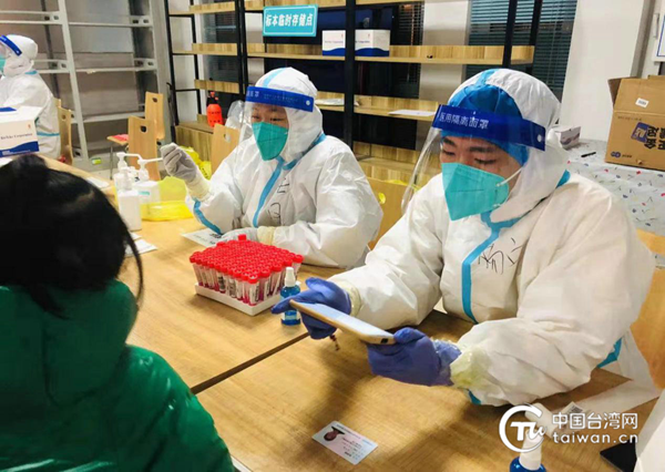 臺胞許美琪組織花間集花藝公司員工參與核酸檢測工作(圖片來源:遼寧沈陽市臺辦供圖)