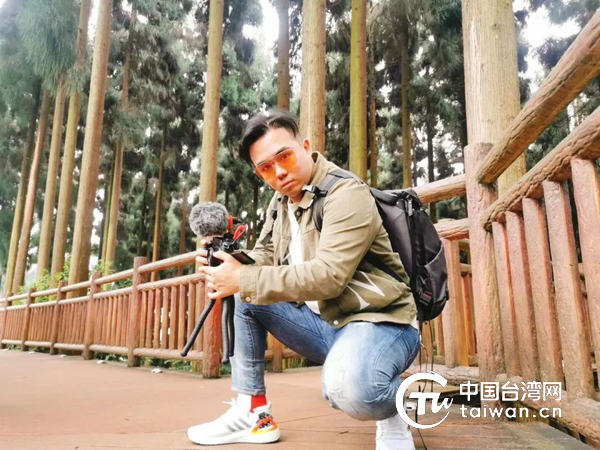 在四川巴中市光霧山創作vlog。(圖片來源:四川省臺辦供圖)