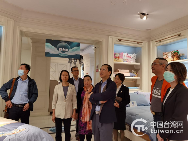 在佛山市黛富妮家飾用品有限公司聽取產品介紹(中為佛山市委常委、統戰部長李政華)(圖片來源:佛山市臺辦)