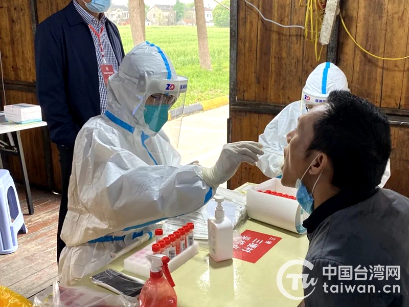臺青蘇詠寬醫(yī)生在進行核酸采集工作(圖片來源:南京市臺辦)